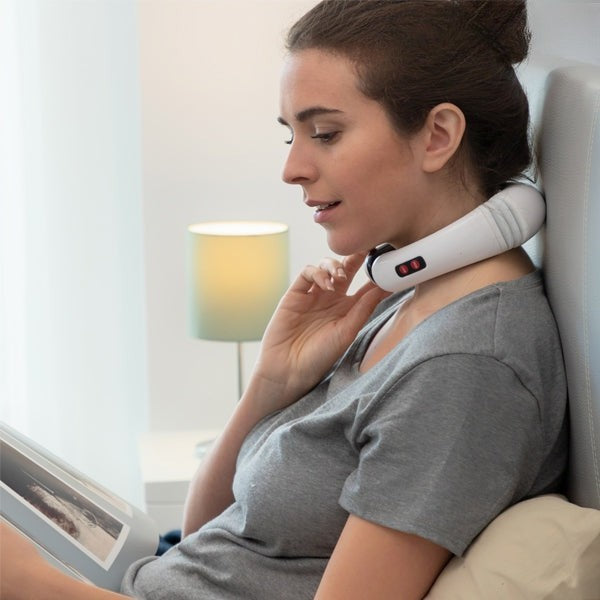Gracias a su tecnología de impulsos electromagnéticos, este dispositivo estimula los puntos de acupresión y reproduce la sensación de un masaje profesional, proporcionando alivio inmediato en zonas clave como el cuello, los hombros y la parte superior de la espalda.