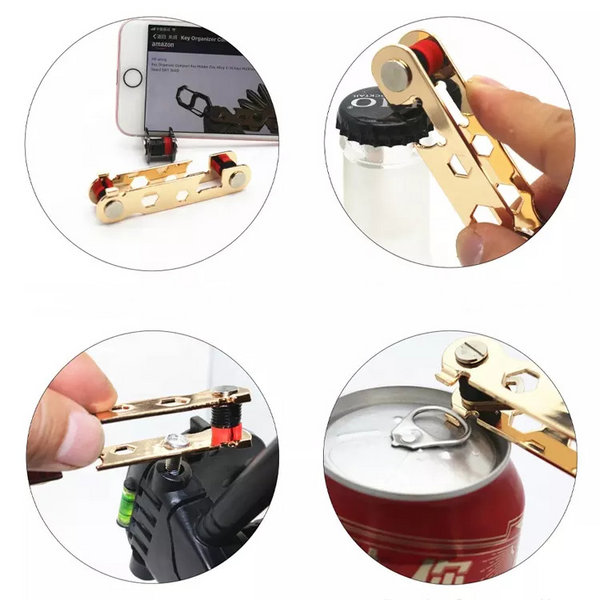 Su diseño ergonómico incorpora múltiples funciones prácticas, como destornillador, abridor, soporte para móvil y más, convirtiéndose en un gadget indispensable para el hogar, la oficina o los viajes.